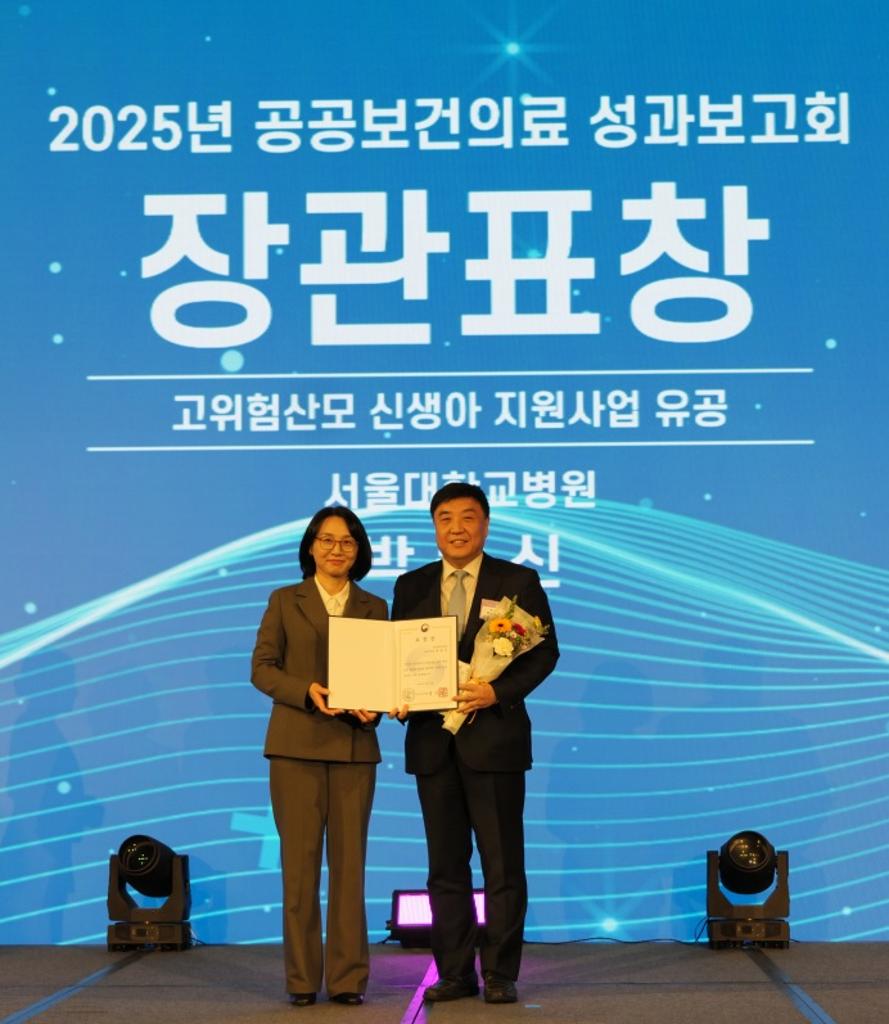 서울대병원 산부인과 박중신 교수가 18일 개최된 ‘2025년 공공보건의료 성과보고회’에서 고위험 산모·신생아 지원사업 유공 분야 수상자로 선정돼 보건복지부장관 표창을 수상했다.