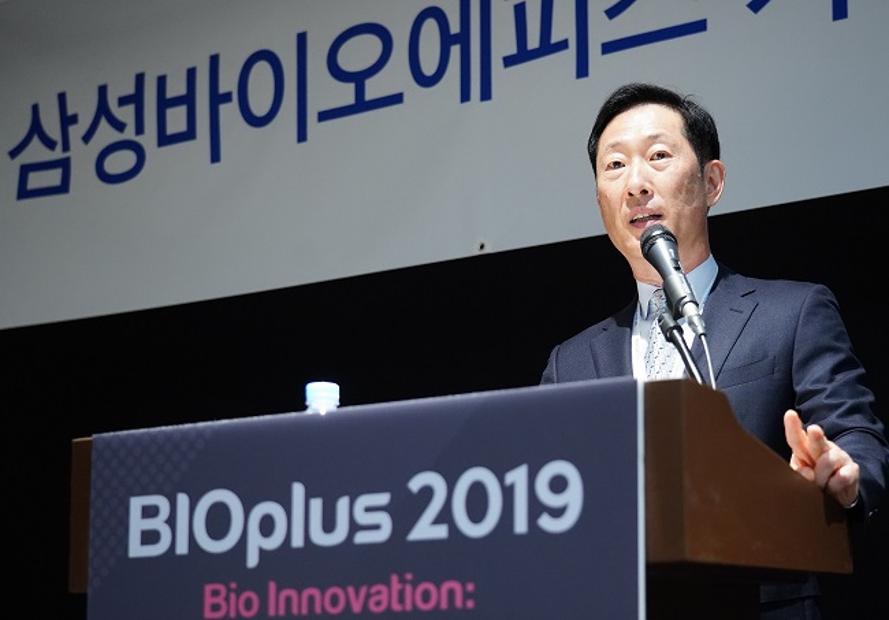 사진: 삼성바이오에피스 고한승 사장이 바이오플러스에서 2019년 첫 흑자전환 예상에 대해 발표하고 있다.
