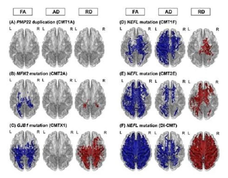 유전적 이상으로 인해 말초신경병 및 근육마비가 진행되는 샤르코마리투스병 환자들의 유전자형별 뇌 미세 구조 변화를 나타낸 신경망 지도가 세계 최초로 나왔다.