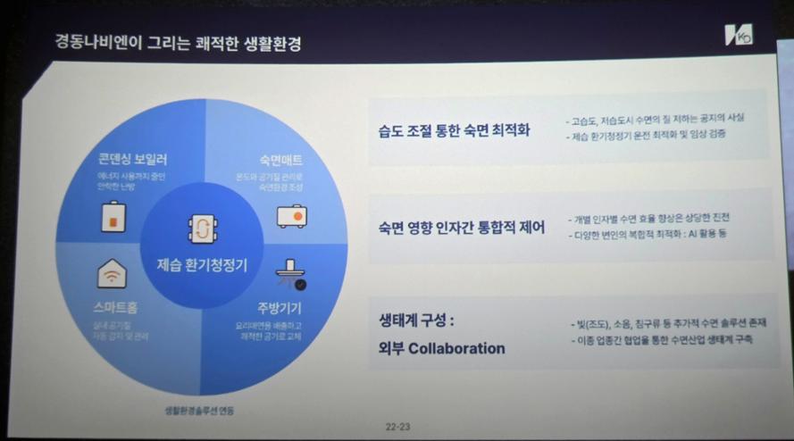 경동나비엔 김용범 부사장은 침실 환경을 수면의 중요한 변수로 보고 온도, 습도, 공기질, 환기 관리의 필요성을 강조했다.