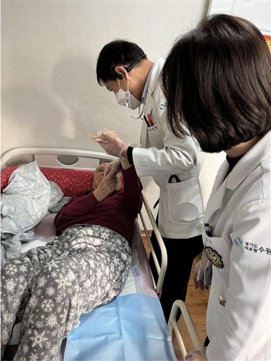 경기도의료원 수원병원(수원병원)은 지난 22일 정일용 원장, 간호사, 사회복지사가 한 팀으로 구성돼 장기요양 재택의료센터의 첫 방문 진료를 실시했다고 23일 밝혔다.