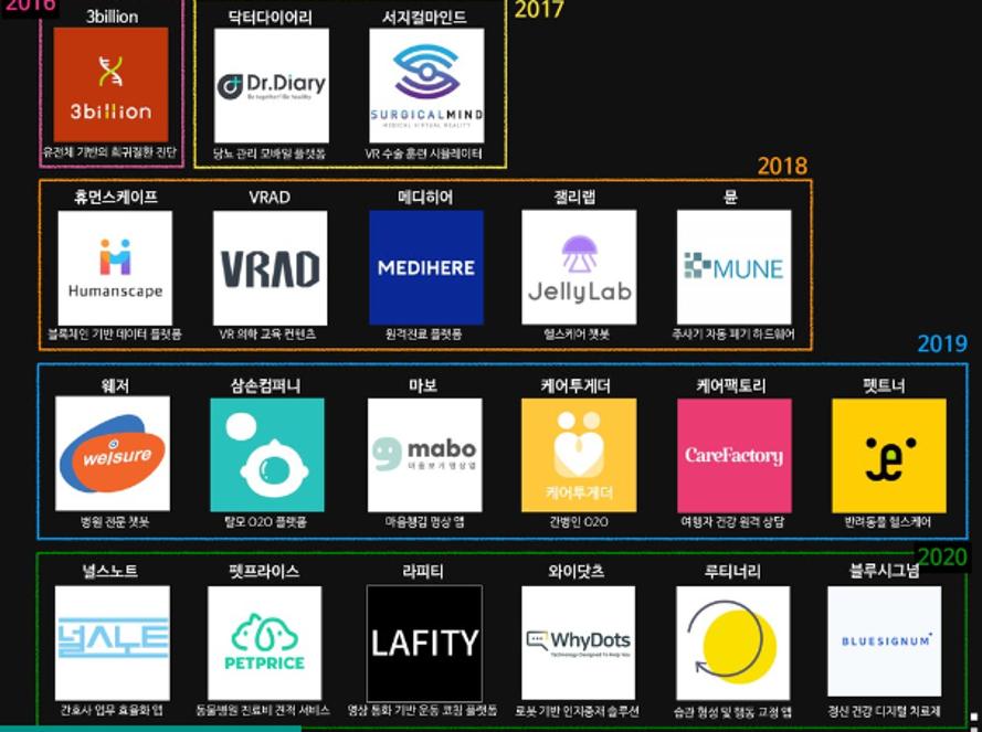 2020년에는 투자 규모를 이전보다 키워서 보다 활발하게 투자했다. 검토한 팀도 2019년 50개에서 2020년 110팀으로 2배가 넘었다. 이 중에서 총 6개의 회사에 투자했고 해를 넘긴 투자 한 건도 며칠 전에 마무리했다. 매년 대여섯 건의 투자를 이어가는 것이 DHP의 목표이며, 2015년부터 지금까지 21개 스타트업에 투자했다. 분야는 인공지능, 유전체 분석, 가상현실(VR), 만성질환 관리, 정신건강이나 의료인 업무 효율화, 반려동물 헬스케어 등까지 다양하다.