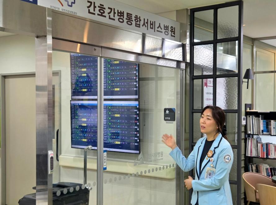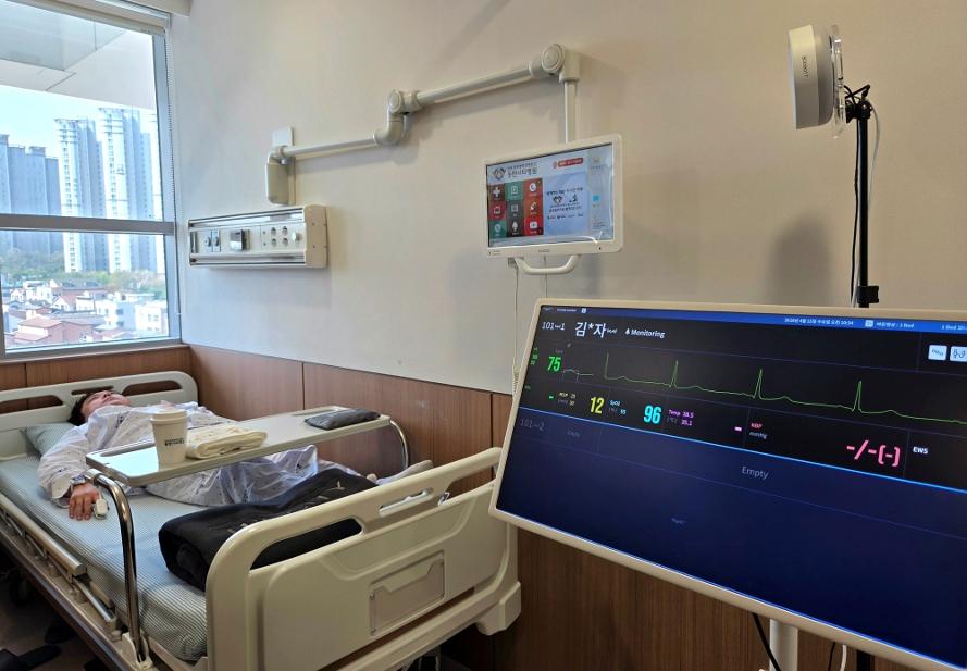 경기도 화성 동탄에 위치한 동탄시티병원. 1층 체험존과 간호간병병동에 들어서면 모니터 화면이 쉴 새 없이 반짝인다. 화면에는 환자의 심박수와 산소포화도, 체온 등 생체신호가 실시간으로 표시되고, 이상 징후가 감지되면 즉각 알람이 울린다.