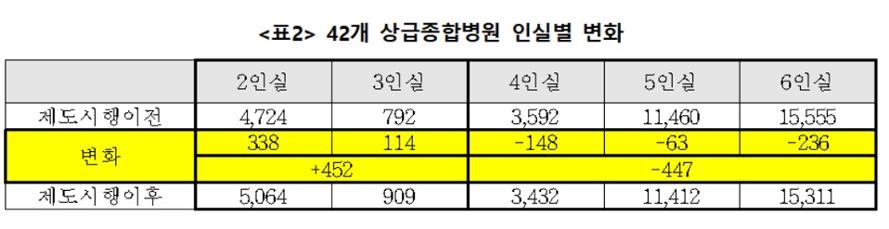 윤 의원은 "병원들이 제도 시행에 발맞춰 기존 4~6인실을 줄이고, 2·3인실을 늘리는 등 병실 규모를 변경했다. 이로 인해 환자 의료비 부담은 오히려 늘어나게 됐다"라며 "건강보험의 보장성강화를 명분으로 42개 상급종합병원의 입원료 수익을 정부가 지원했다는 지적을 피하기 어렵게 됐다"고 했다.