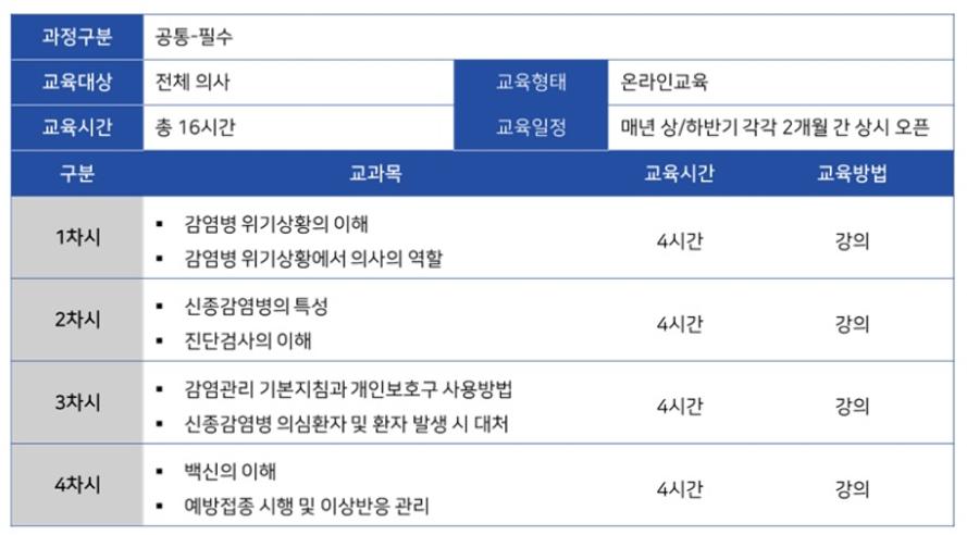 해당 연구보고서는 국내·외 감염병 대응 체계와 교육 현황을 조사해 국내 교육과정의 문제점을 도출하고, 감염병 위기대응 전문가와의 인터뷰 및 의사 대상의 설문조사를 통해 교육과정과 운영방안의 개선책을 제안했다.
