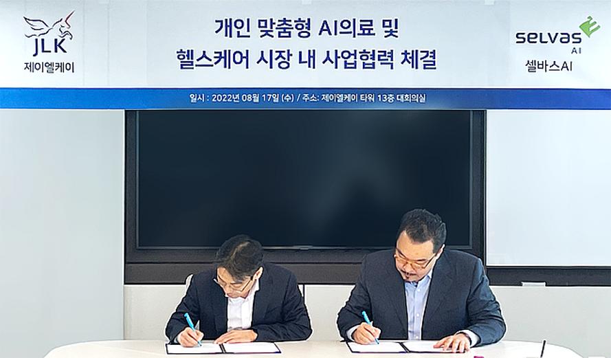 인공지능(AI) 전문기업 셀바스AI가 의료 인공지능 전문기업 제이엘케이와 업무협약(MOU)을 체결했다고 22일 밝혔다.