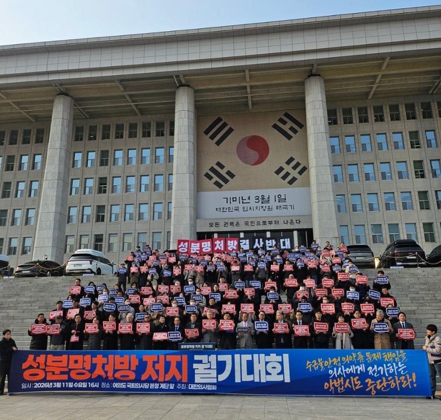 아울러 "국정과제로 제시된 국민건강에 중요한 수급불안정 의약품 문제의 해결을 위해 이미 2025년 11월 약사법 개정됐고 필수의약품 수급대책이 시행될 예정이다. 도대체 국회가 통과시킨 이 법이 시행되기도 전에 의약분업의 근간을 저해하는 또 다른 악법을 개정하는 이유가 무엇인가"라며 "전문성이 부정당하고 국민의 건강권마저 훼손되는 작금의 상황을 참아야 할 이유가 더 이상 없다. 인내는 한계에 도달했다"고 말했다.