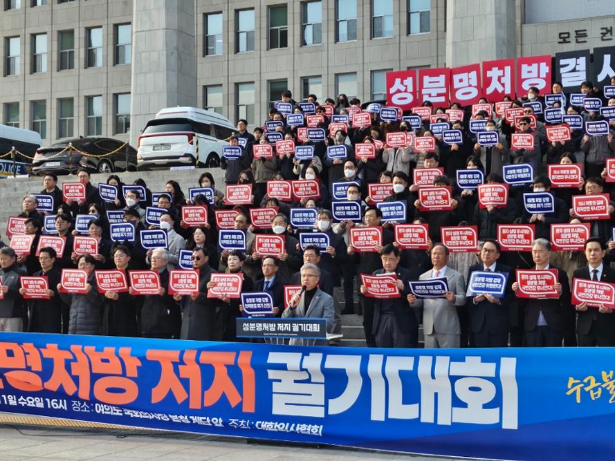 대의원회 김교웅 의장도 '거대한 투쟁의 서막'이 열릴 수 있다고 경고했다. 김 의장은 "오늘 궐기대회는 시작에 불과하다. 만약 국회가 성분명처방 강제화 법안 상정을 강행한다면, 우리는 전문성을 사수하고 국민 건강을 지키기 위한 강력하고도 거대한 투쟁의 서막이 될 것"이라고 말했다.