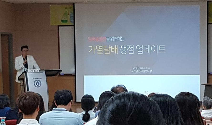 먼저 플래너리 세션(plenary session)에서 국가금연지원센터 이성규 센터장은 '담배종결전을 위협하는 가열담배 쟁점 업데이트'라는 주제발표로 가열담배의 최근 이슈를 소개했다.