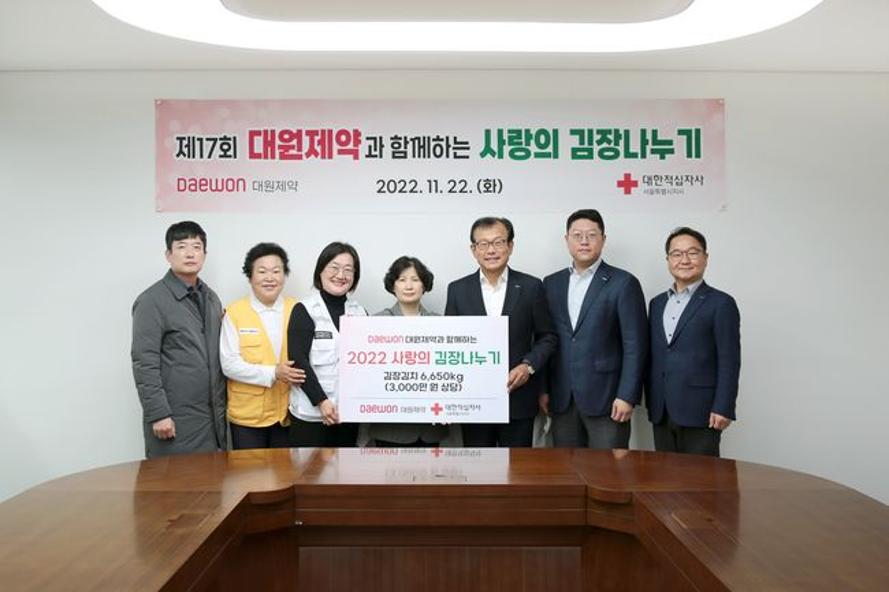 대원제약은 서울 성동구 대원제약 본사에서 대한적십자사, 성동구청과 함께 '2022년 제17회 사랑의 김장 나누기' 전달식을 진행했다고 22일 밝혔다.