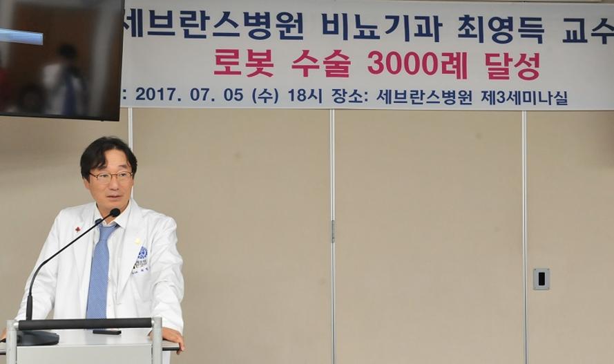 연대 세브란스병원 비뇨기과 최영득 교수가 아시아에서 처음으로 비뇨기과 로봇 수술 3천 례를 달성했다.