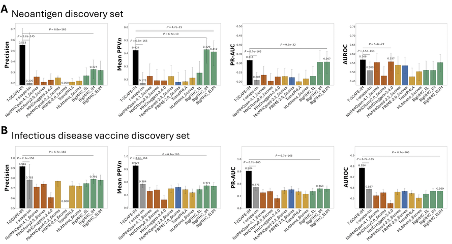 사진: T-SCAPE (검정 막대)가 기존 모델들과 비교해 면역 반응 예측에서 가장 높은 성능을 보이는 모습.