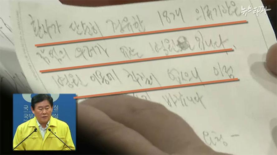뉴스타파에서 사진 인용. 최경환 경제부총리는 메르스 대국민 브리핑 중 '메르스 환자 경유 병원은 문제없으니 마음 놓고 이용하라'는 BH(청와대) 요청 메모장을 읽으면서 정부의 컨트롤 타워 부재 논란을 키웠다