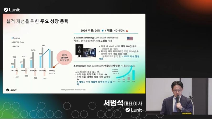 이를 해결하기 위해 루닛은 주주배정 유상증자를 결정했다. 풋옵션 리스크를 근본적으로 해소하기 위한 전략적 선택이란 설명이다. 이 외에도 이번 유상증자를 기반으로 ▲대규모 현금 유입을 통한 단기 유동성 안정∙운영 지속가능성 강화 ▲중장기 성장 자금 기반 구축 ▲2026년 BEP 달성 가시화 ▲매출 목표 초과 달성 흐름 진입 ▲법차손 이슈 구조적 해소 등의 효과가 나타날 것으로 내다봤다.