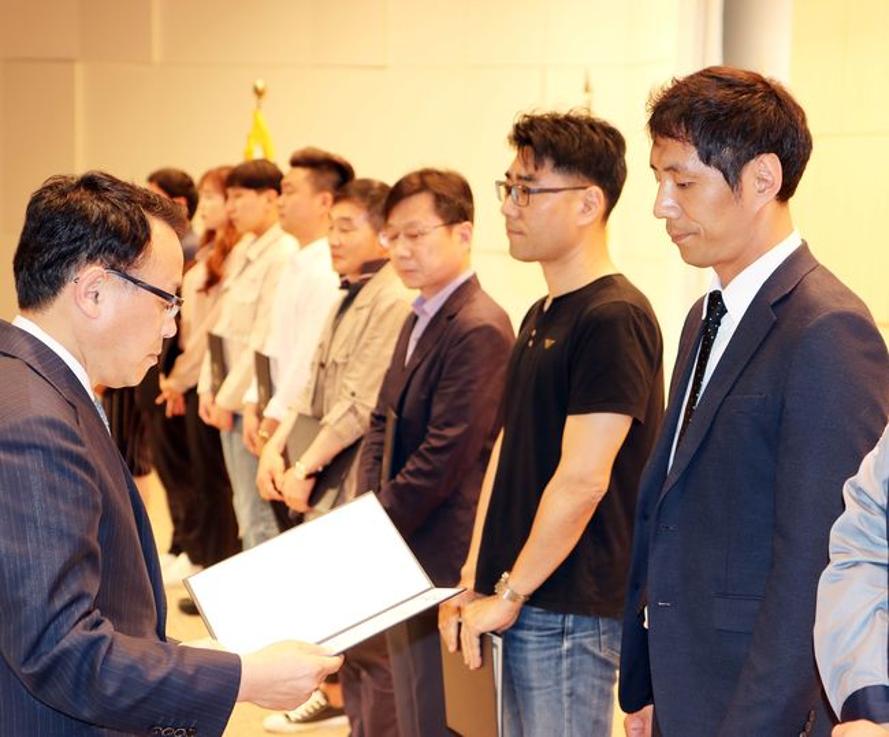 삼진제약 향남공장 품질부 '알확행' 이태봉 분임조장이 최우수상을 수상하고 있다.