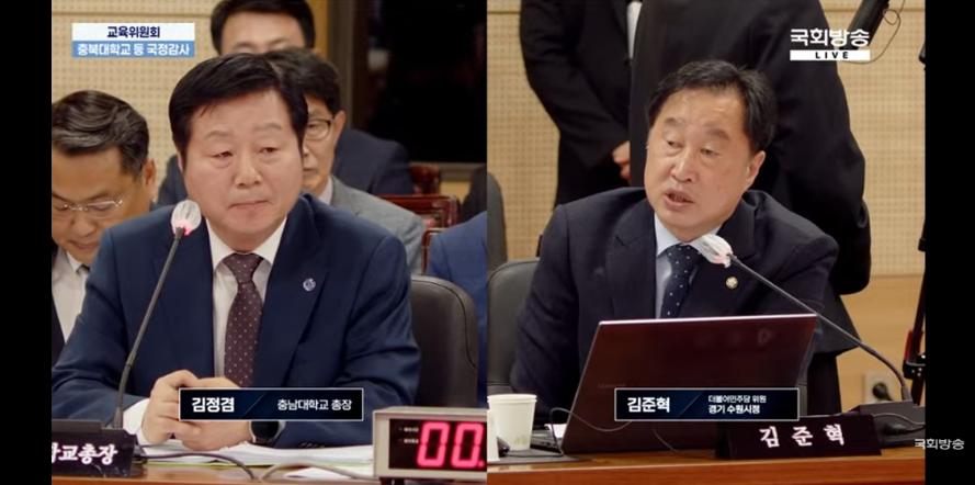 김정겸 충남대학교 총장, 김준혁 더불어민주당 의원. 사진=국회방송 중계 영상 갈무리