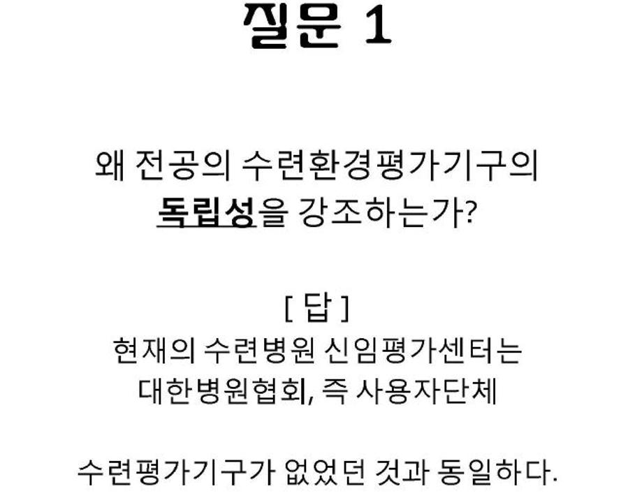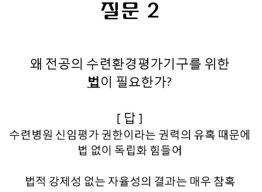 왜 독립된' 전공의 수련환경평기기구를 강조하고, 이를 위한 '법'이 필요한지, 왜 수련 및 근무환경을 제대로 '평가'해야 하는지?