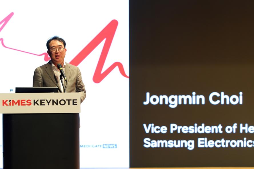 사진: 삼성전자 MX사업부 디지털헬스팀 최종민 상무가 키메스 키노트 세션에서 발표하고 있다.