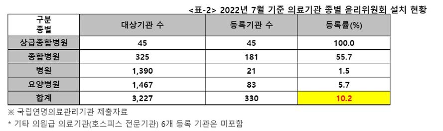 제도 정착단계 들어섰지만…의료기관 윤리위 설치 10% 불과