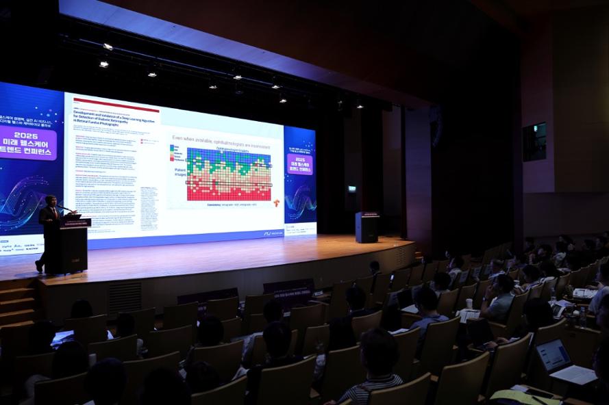 [메디게이트뉴스 하경대 기자] 의료 인공지능(AI) 기업 메디웨일이 지난 2일 '2025 미래 헬스케어 트렌드 컨퍼런스'에서 인공지능(AI) 망막 영상 분석 관련 연구를 소개했다.