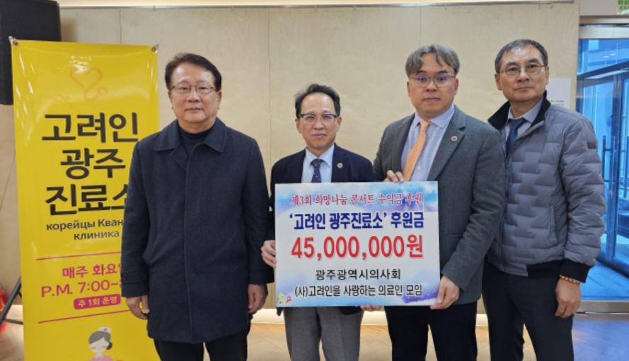 광주광역시의사회가 3일 고려인 동포들의 건강을 위해 의료봉사를 지속하고 있는 고려인 광주진료소에 4500만원을 기부했다.
