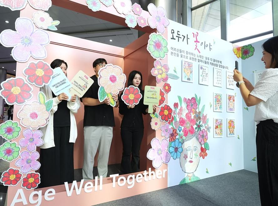올해 2회차를 맞이한 함께 건강하게 나이들기 캠페인은 초고령화 사회로 진입하고 있는 한국에서, 건강한 노화 및 삶의 질 향상이라는 사회적 과제를 조명하고 해결책을 모색하기 위해 시작됐다. 이번 팝업 부스에서는 노인들이 전하는 24가지의 건강한 생활을 위한 지혜와 캘리그라피 작품들이 함께 전시됐다. 총 253명의 저소득 노인이 참여한 이번 활동을 통해 이와 같은 취미 활동이 개인의 건강을 넘어 사회적 차원에서 건강한 시니어 라이프에 기여할 수 있다는 점을 알리는 기회를 제공했다.