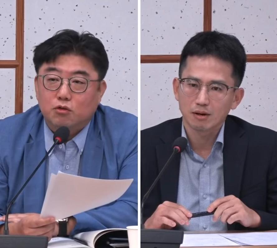 사진 왼쪽부터 더불어민주당 조원준 보건의료수석전문위원, 보건복지부 강준혁 약무정책과 과장.