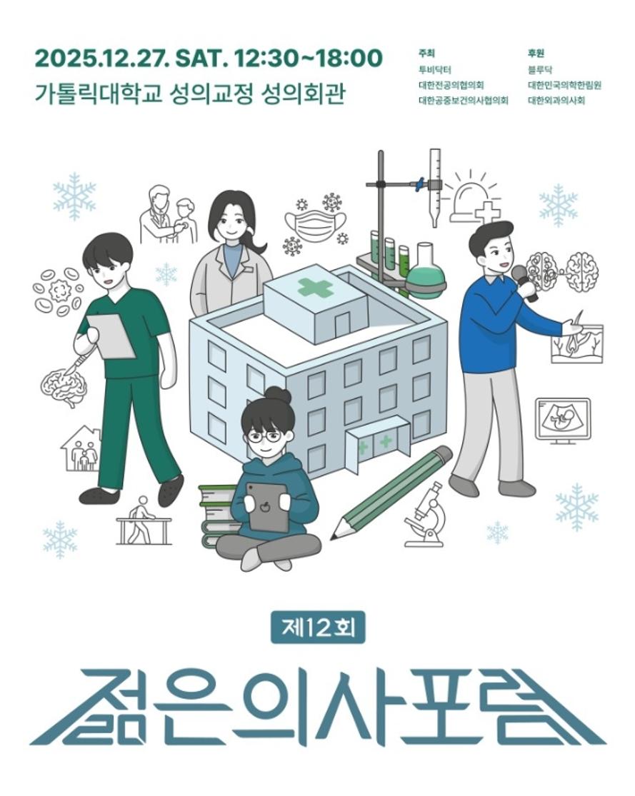 대한전공의협의회(대전협), 대한공중보건의사협의회(대공협)와 의대생∙젊은 의사 비영리단체 투비닥터에서 공동주최하는 제12회 젊은의사포럼이 12월 27일 가톨릭대학교 성의교정에서 개최된다. 이벤터스 페이지에서 사전 접수를 받으며, 현장 접수도 가능하다.