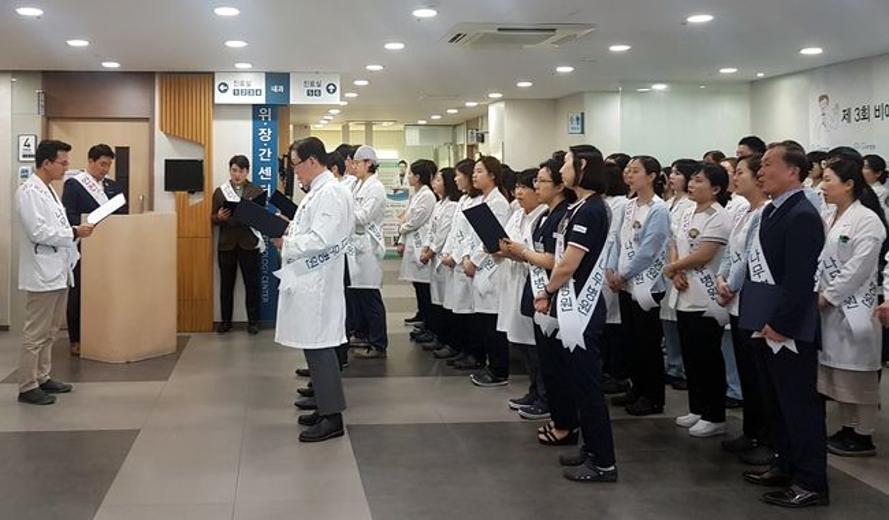임직원 100여 명이 참석한 이번 안전선포식은 민영일 대표원장의 안전의식 강화 연설, 병원 안전위원회 활동 공유, 안전선언문 낭독, 안전뱃지 패용식 등의 순서로 진행됐다.