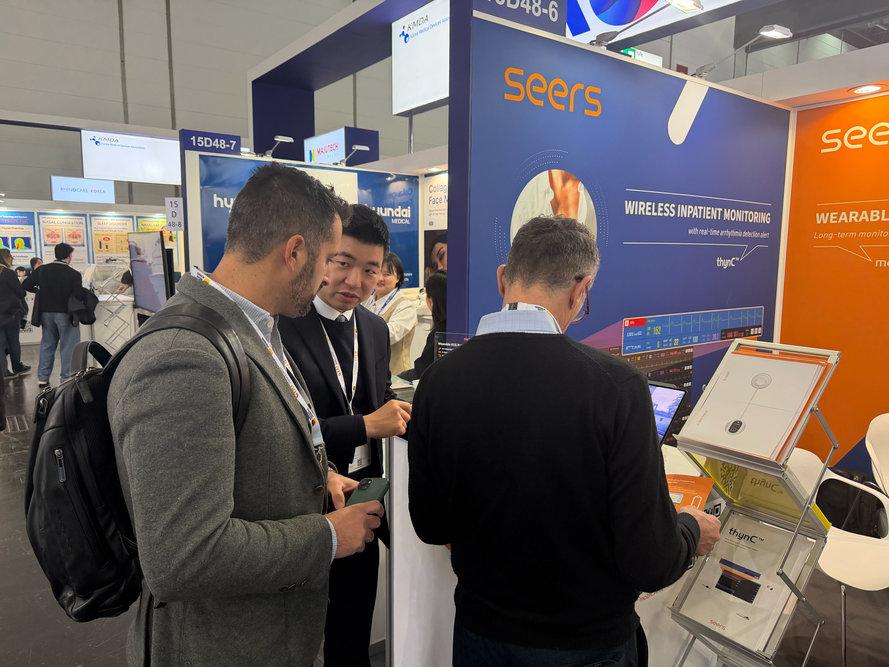 이번 메디카 2025에서는 웨어러블 심전도 분석 솔루션 ‘모비케어(mobiCARE™)’ 와 AI 기반 입원환자 모니터링 플랫폼 ‘씽크(thynC)’를 소개하고 글로벌 파트너 발굴에 나섰다.