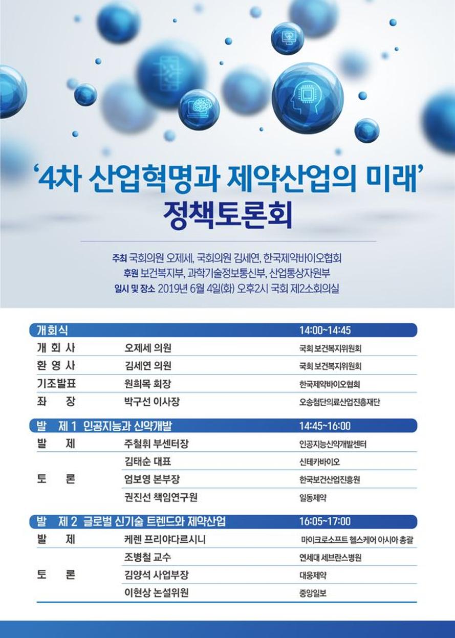 한국제약바이오협회는 6월 4일 오후 2시 서울 여의도 국회 제2소회의실에서 국회 보건복지위원회 소속인 오제세 더불어민주당 의원, 김세연 자유한국당 의원과 공동으로 국회 정책토론회를 개최한다고 29일 밝혔다.
