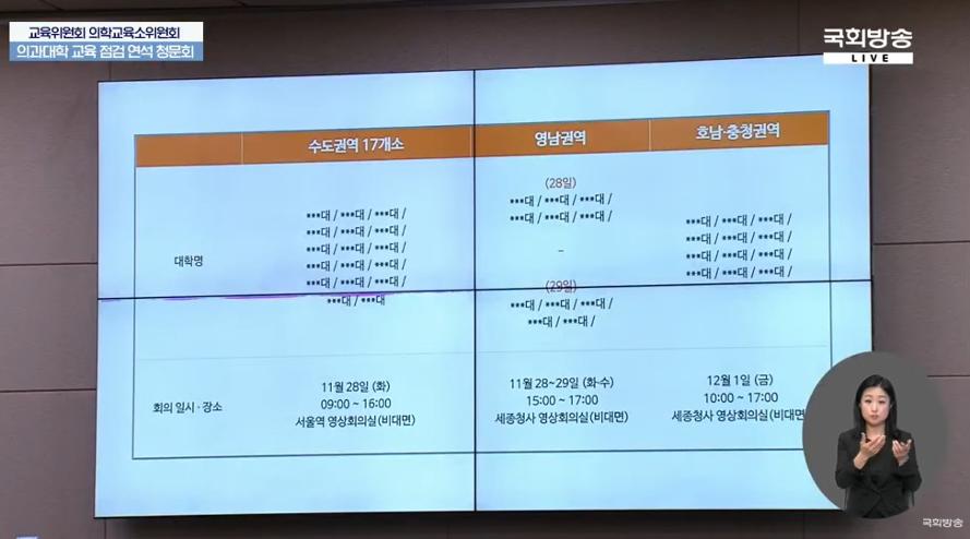 의학교육점검반이 지난해 대학들 대상으로 실시한 비대면 회의 일정. 사진=국회방송 중계 영상 갈무리