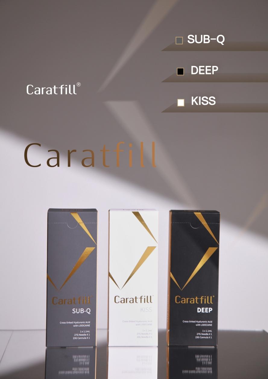 대표 제품인 '캐럿필(Caratfill)'은 NSE 기술로 히알루론산의 변형을 최소화하고 안전성을 높인 프리미엄 필러 시리즈로, 일반 필러보다 낮은 잔류 BDDE 수치(0.2ppm)와 높은 탄성을 갖춰 자연스러운 볼륨을 제공한다.