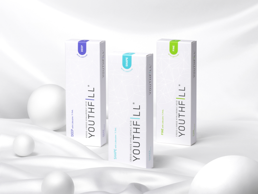 유스필은 리도카인을 포함한 히알루론산 필러로, 성인의 안면부 주름과 중안면주 볼륨 감소를 일시적으로 개선하기 위해 사용된다. 또한 HoPE 기술로 잔류 BDDE를 효과적으로 제거해 안전성을 높였으며, 균일한 주입감으로 정밀한 시술을 돕는다.