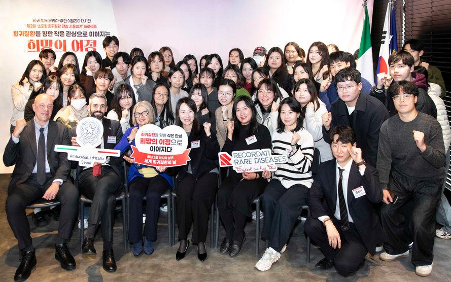 레코르다티코리아가 주한 이탈리아 대사관과 함께 매년 2월 마지막 날인 ‘세계 희귀질환의 날’을 맞아 24일 서울 강남구 하이 스트리트 이탈리아 4층 컨퍼런스 홀에서 희귀질환 제약산업에 관심이 있는 국내 중·고등학생 및 대학생 50명을 모집해 제2회 ‘소외된 희귀질환 관심 기울이기’ 교육 행사를 개최했다고 25일 밝혔다.