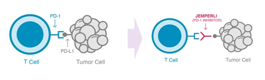 젬퍼리주는 면역세포(T세포)의 면역관문 수용체인 세포 예정사 1(PD-1)을 표적으로 하는 단클론항체다. PD-1은 CD28 계열에 속하는 억제성 면역관문 수용체로 활성화된 T세포, B세포, NK세포, 골수 계통 세포에서 발현되며, 면역조절에서 중추적인 역할을 수행한다.
