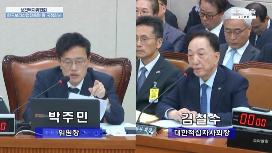 박주민 국회 보건복지위원장. 김철수 대한적십자사 회장. 사진=국회방송 중계영상 갈무리