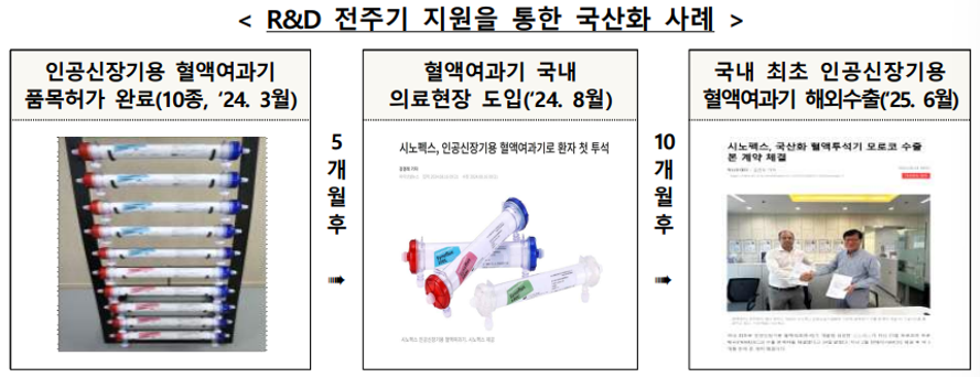 구체적으로 전량 수입에 의존하던 인공신장용 혈액여과기의 국산화, 세계 최초 인공지능(AI) 기반 뇌경색 진단보조 소프트웨어 의료기기 개발 등이 있다. 정부는 이러한 성과가 단절되지 않고 이어질 수 있도록 후속사업을 통해 의료기기 R&D 전주기 지원을 지속할 계획이다.