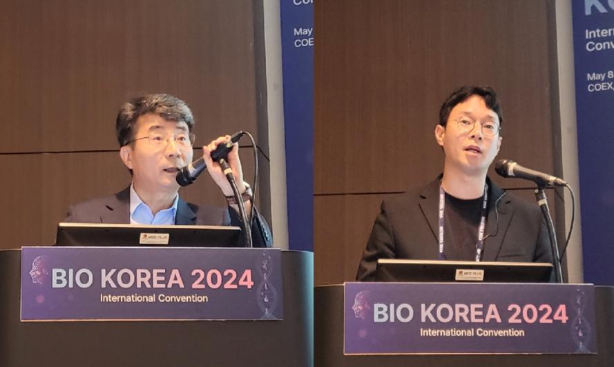 (왼쪽부터) 프로젠 김종균 대표, 대웅테라퓨틱스 이부용 DDS 팀장