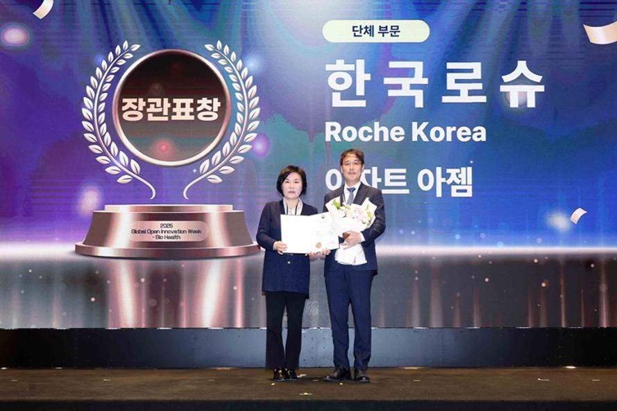한국로슈가 보건복지부로부터 공공형 정밀의료 연구인 KOSMOS II 연구에 대한 공로를 인정받아, 바이오헬스 산업의 오픈이노베이션 생태계 조성에 기여한 단체 및 기관에 수여하는 ‘2025 바이오헬스 글로벌 오픈이노베이션 활성화 유공자 포상’에서 복지부장관상을 수상했다고 12일 밝혔다.