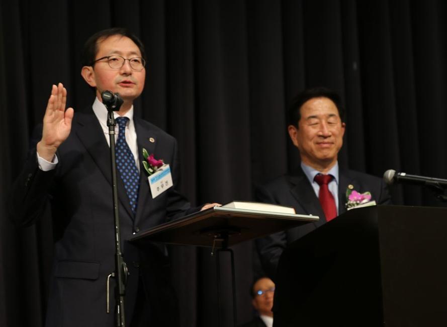 의협 추무진 회장은 이날 취임사를 통해 '희망의 미래'를 만드는데 앞장서겠다고 다짐했다.