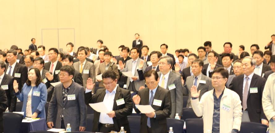 직선으로 선출된 의협 대의원 245명이 선서를 하고 있는 모습