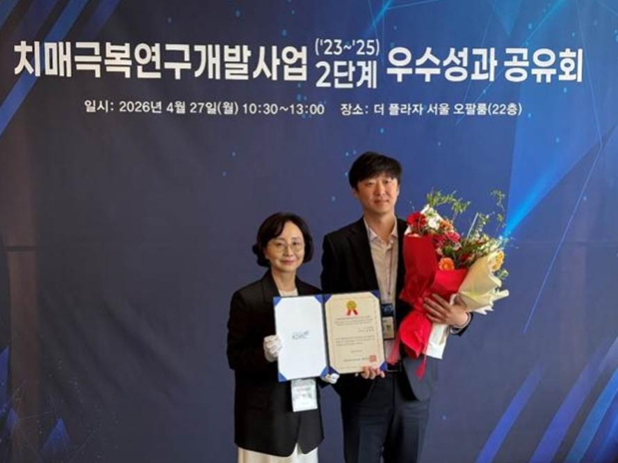 지난 27일 더 플라자 호텔 서울 22층 오팔룸에서 열린 ‘치매극복연구개발사업 2단계 우수성과 공유회’에 뉴로핏 김동현 공동대표이사 겸 CTO가 참석해 상을 수여받았다.