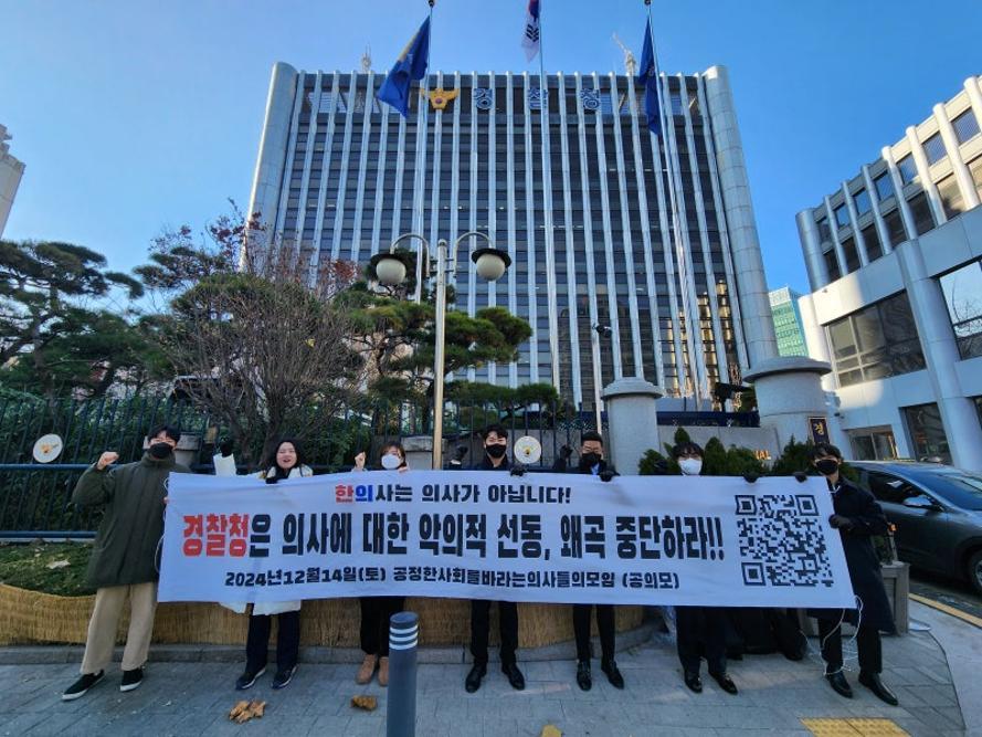 공의모 회원들이 2024년 12월 14일 경찰청 앞에서 통계 왜곡 문제를 제기하며 집회를 연 모습.