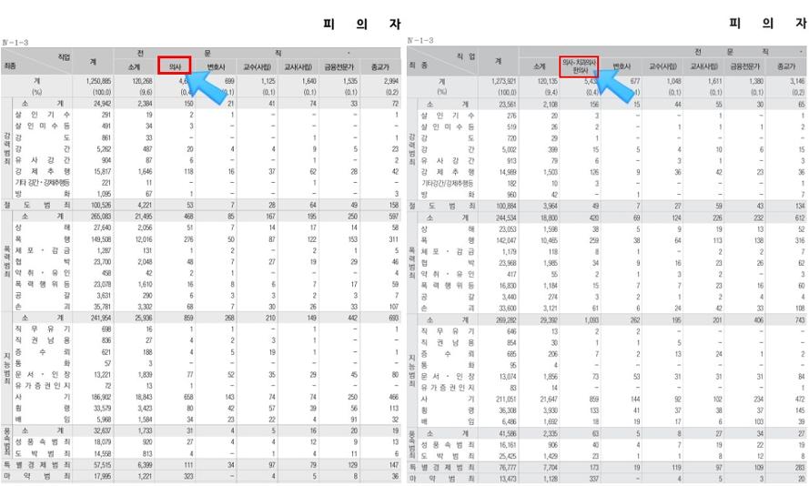 그간 경찰청 범죄통계는 의사∙한의사∙치과의사를 따로 분류하지 않고 ‘의사’로 묶어서 발표해 왔다. 이에 실제 의사 직종의 범죄 통계가 과대 표집되는 문제가 있었다.