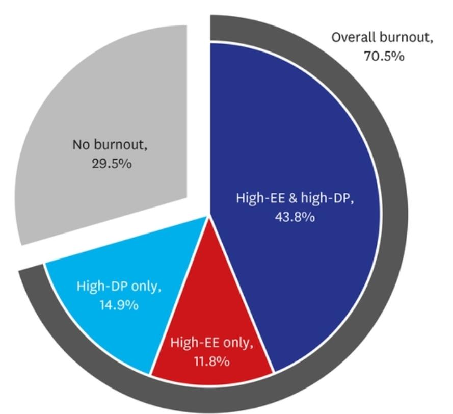 또한 "특히 외과 분야는 큰 타격을 입었다. 외과 전공의 지원 미달과 높은 업무 강도가 밀접하게 연관돼 현재 의료 위기 상황은 한국 외과의사들의 번아웃을 더욱 심화시키고 있다. 번아웃에 가장 큰 영향을 미치는 요인은 주간 근무 시간으로, 여성 외과 의사는 의료대란 기간 동안 번아웃 수준이 더 높았고 번아웃 증가 폭도 컸다. 향후 여성 의사의 번아웃 원인 조사와 대응책을 찾기 위한 연구가 더 필요하다"고 제언했다.