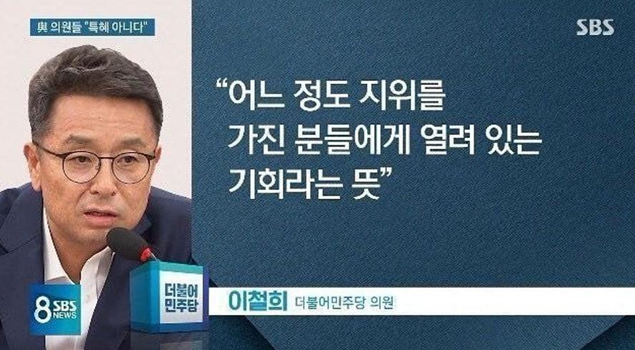 [메디게이트뉴스] 2019년 조국 법무부장관 후보 인사청문회에서 이철희 더불어민주당 의원은 후보자 딸의 입시관련 의혹에 대해 "어느 정도 지위를 가진 분들에게 열려 있는 기회라는 뜻"이라는 발언을 했다.