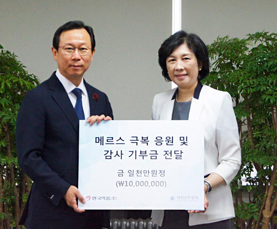대한간호협회는 안국약품이 의료현장에서 메르스 종식을 위해 뛰고 있는 간호사들을 격려하고자 23일 오전 협회를 방문, 격려금 1000만원을 전달했다고 밝혔다.