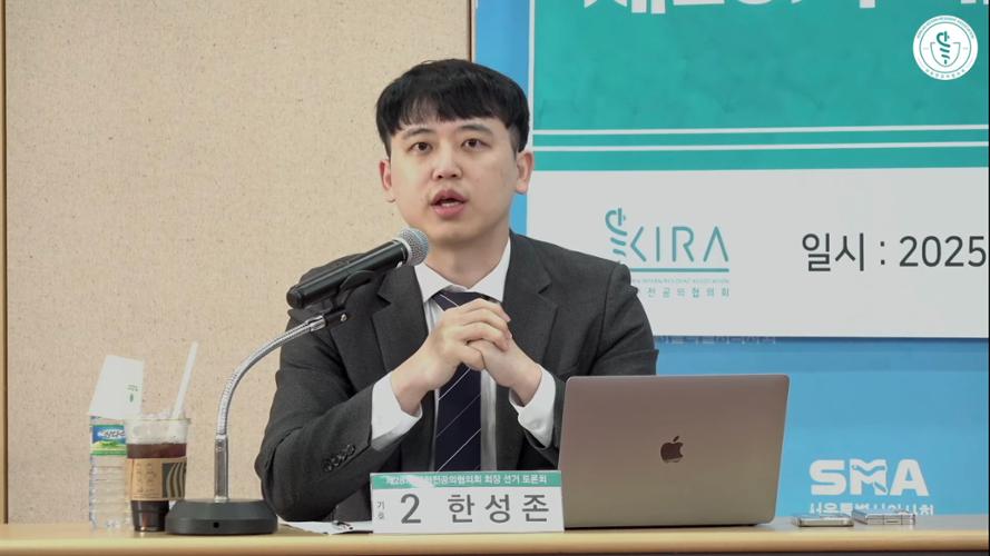 제28기 대한전공의협의회장 선거 후보자 토론회 제28기 대전협 회장 선거 후보자 토론회가 대전협 중앙선거관리위원회 주최, 메디게이트뉴스 박민식 기자 진행으로 18일 오후 4시 서울특별시의사회관에서 열렸다. 선거 투표는 2025년 10월 27일 오전 9시부터 10월 31일 오후 6시까지이며, 개표 및 당선인 공고는 31일 오후 7시 이후다. 기호 1번 이태수 후보는 연세의대를 졸업한 후 세브란스병원 인턴을 거쳐 현재 국민건강보험공단 일산병원 재활의학과 3년차다. 대한의료정책학교 1기 출신으로 대한병원의사협의회, 미래의료포럼 등 다양한 단체에서 활동하고 있다. 기호 2번 한성존 후보는 울산의대를 졸업한 성형외과 레지던트 3년차로, 현 대전협 비상대책위원장이다. 서울아산병원 전공의협의회 대표, 대전협 비대위원, 서울시의사회 정책이사를 지냈다.