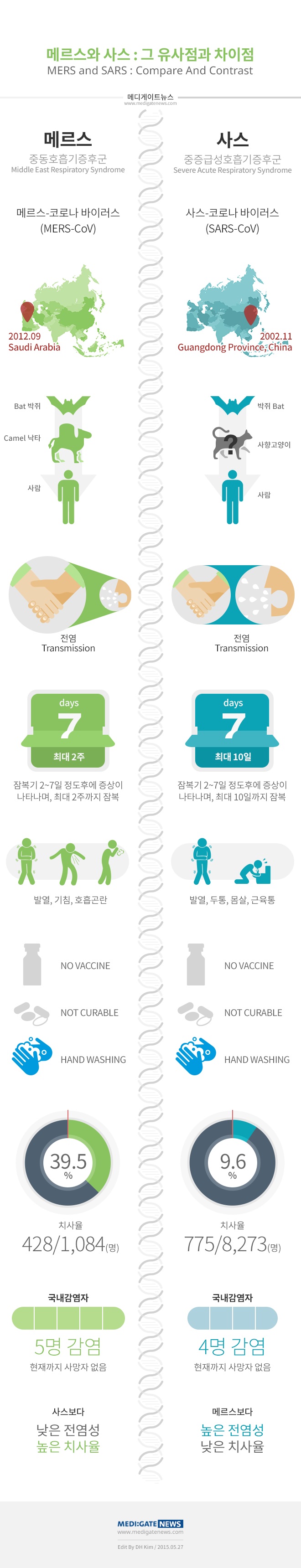 메르스(MERS)와 사스(SARS)의 비교 인포그래픽